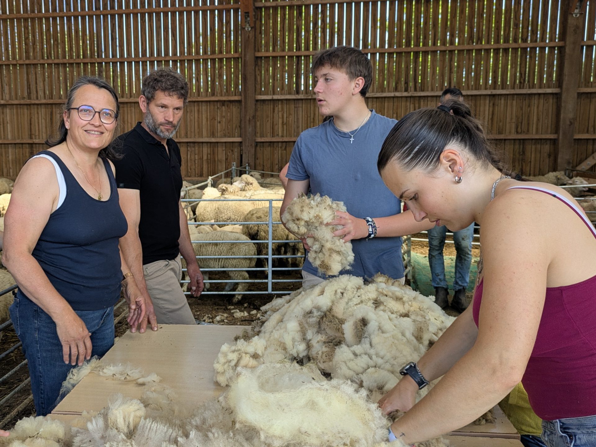 L’association assure aussi la transmission des gestes traditionnels à travers des ateliers et formations : tri, cardage, feutrage, tissage, teintures végétales et usages contemporains de la fibre.
